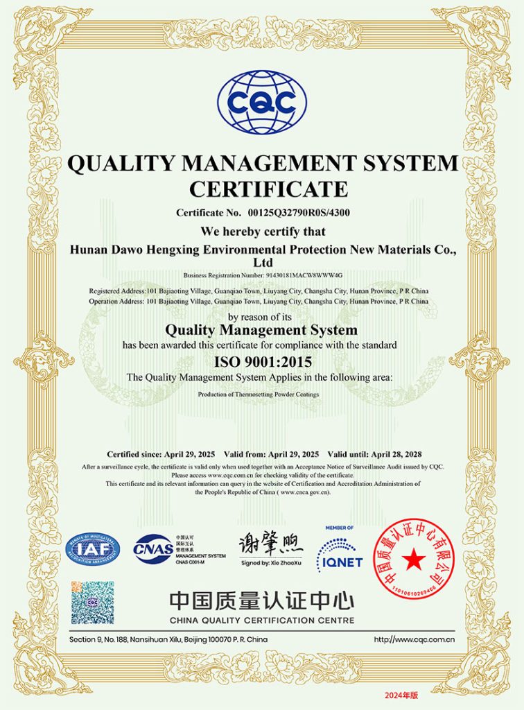 Foshan Dawo Xinhui Technology Co., Ltd. is an production enterprise. Our production base, established in May 2015 and with over ten years of operation, is located in Changsha, Hunan Province. The modern production facility spans more than 10,000 square meters, with an annual production capacity exceeding 10,000 tons. Adhering to the business philosophy of “Innovation, Quality, Green Development, and Win-Win Cooperation,” the company specializes in providing customers with high-quality, environmentally friendly powder coatings and customized coating solutions.